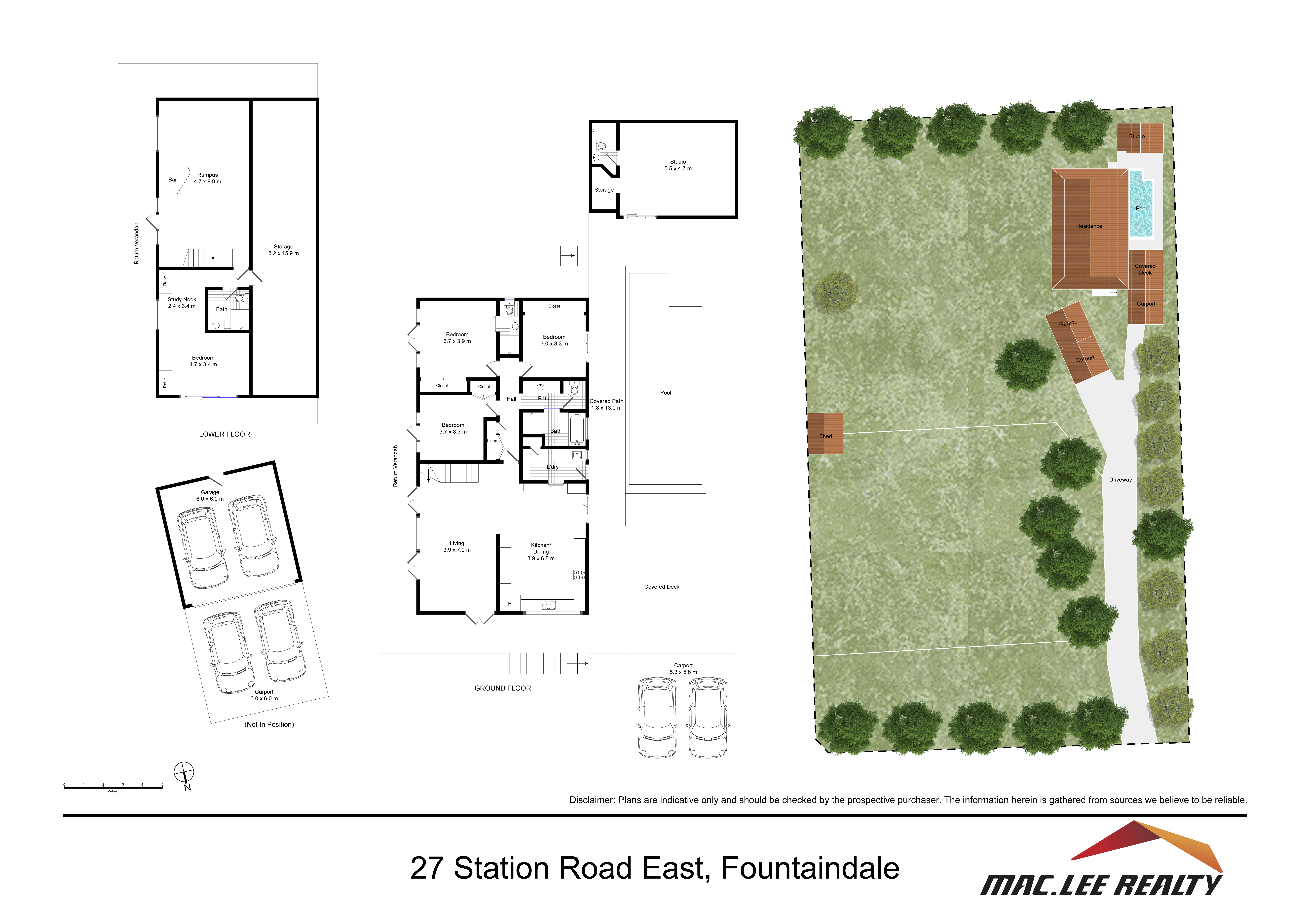 - Double lock up garage with additional undercover parking for four vehicles