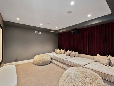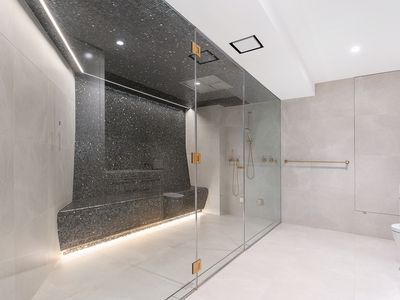 - Custom home theatre, mosaic-tiled steam room